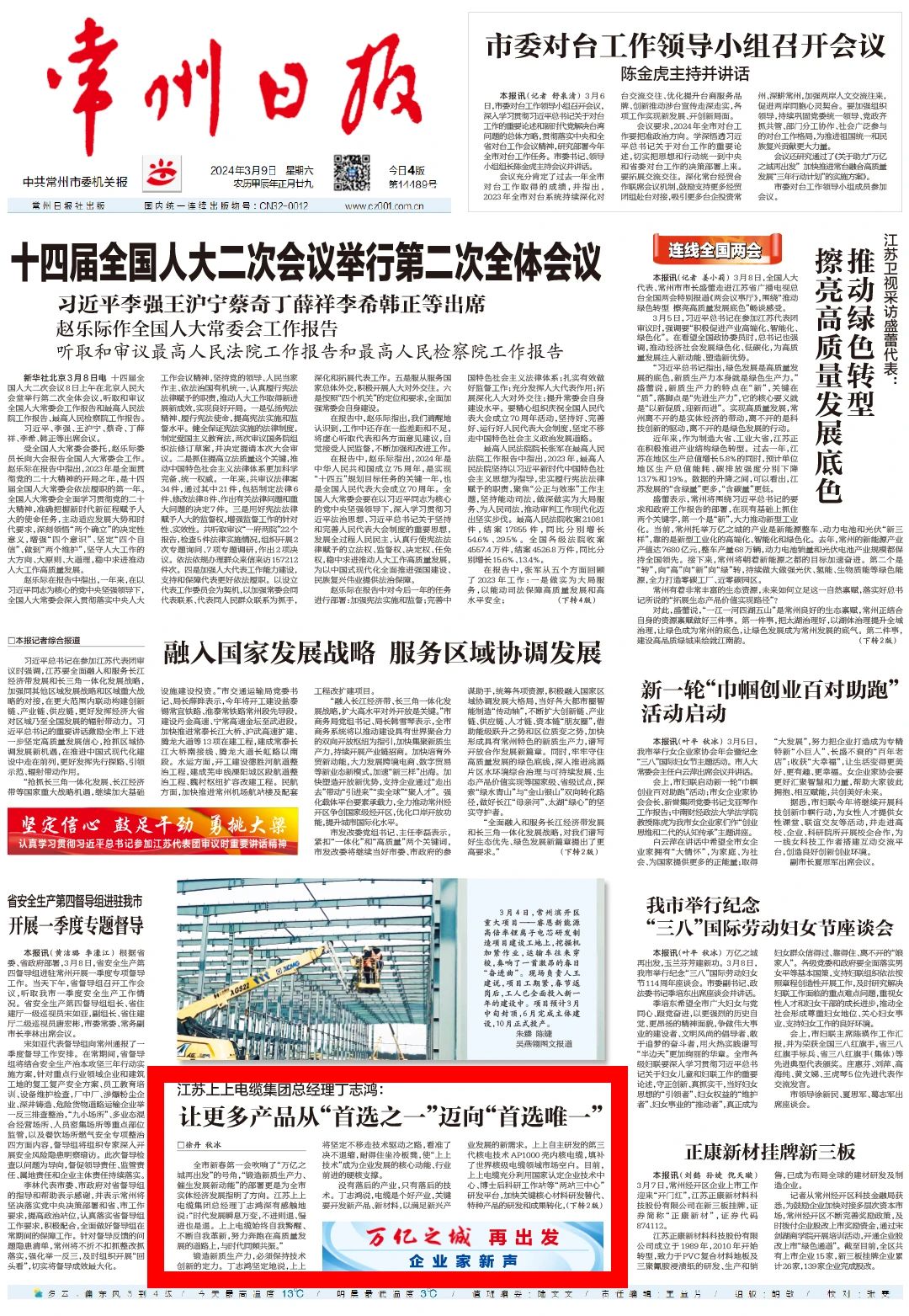 今年,上上又立項(xiàng)了17項(xiàng)特種產(chǎn)品和10項(xiàng)材料的研發(fā),將應(yīng)用于光伏、儲(chǔ)能、核電站、風(fēng)能等新能源領(lǐng)域,不斷提升企業(yè)的綜合競(jìng)爭(zhēng)力。站在常州“萬億之城再出發(fā)”的新起點(diǎn),丁志鴻信心滿滿:“保持定力,催生動(dòng)力,激發(fā)活力,加快發(fā)展新質(zhì)生產(chǎn)力,打造上上發(fā)展新引擎,努力成為全球電纜制造業(yè)的引領(lǐng)者,為常州經(jīng)濟(jì)建設(shè)貢獻(xiàn)更多‘上上方案’。”