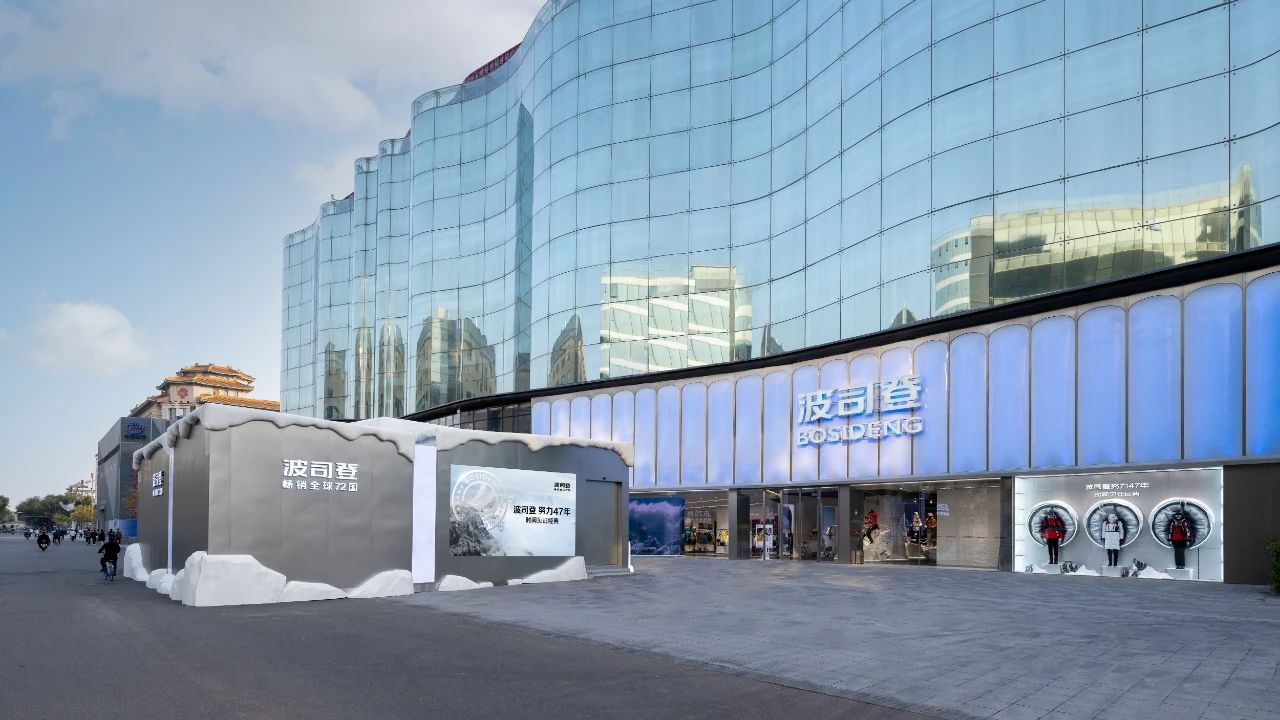 ▲波司登登峰主題概念店點(diǎn)亮全球至美雪景