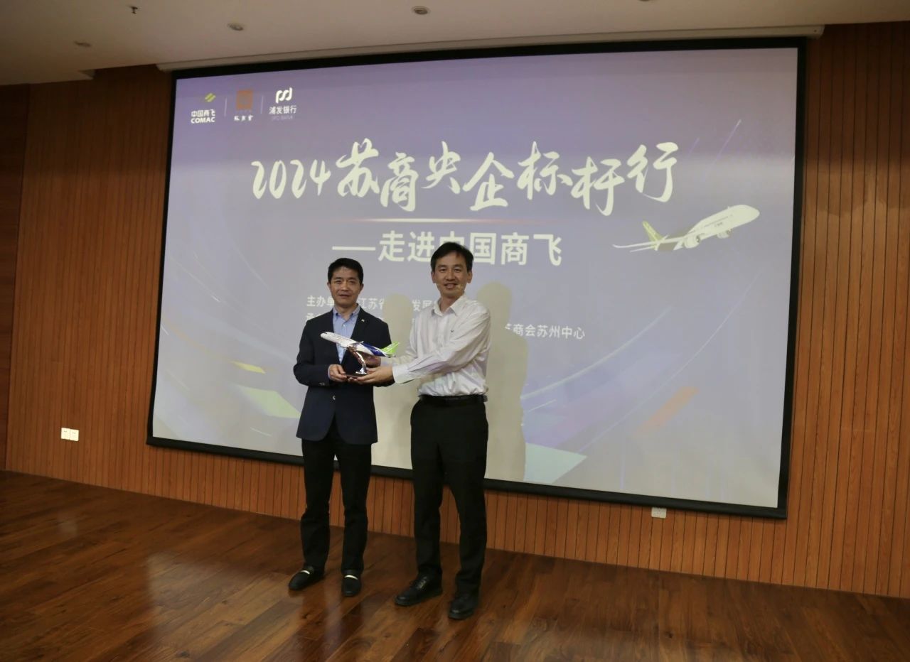 為進(jìn)一步推動江蘇民營企業(yè)的創(chuàng)新變革和制造業(yè)又好又快轉(zhuǎn)型升級,5月15日下午,由江蘇省蘇商發(fā)展促進(jìn)會主辦,上海浦東發(fā)展銀行蘇州分行、蘇商會蘇州中心承辦的“2024蘇商央企標(biāo)桿行——走進(jìn)中國商飛”活動如期舉行?;顒佑商K商會聯(lián)席會長、上海東昌企業(yè)集團(tuán)有限公司董事長丁建祖作學(xué)習(xí)總顧問,帶領(lǐng)近20位江蘇企業(yè)家齊聚上海,走進(jìn)中國商用飛機(jī)有限責(zé)任公司(以下簡稱“中國商飛”),圍繞“新質(zhì)引領(lǐng) 創(chuàng)新發(fā)展”這一主題,共同探討如何充分利用新技術(shù)推動傳統(tǒng)制造業(yè)轉(zhuǎn)型升級,探尋科技革命下中國制造“新質(zhì)”發(fā)展新密鑰。