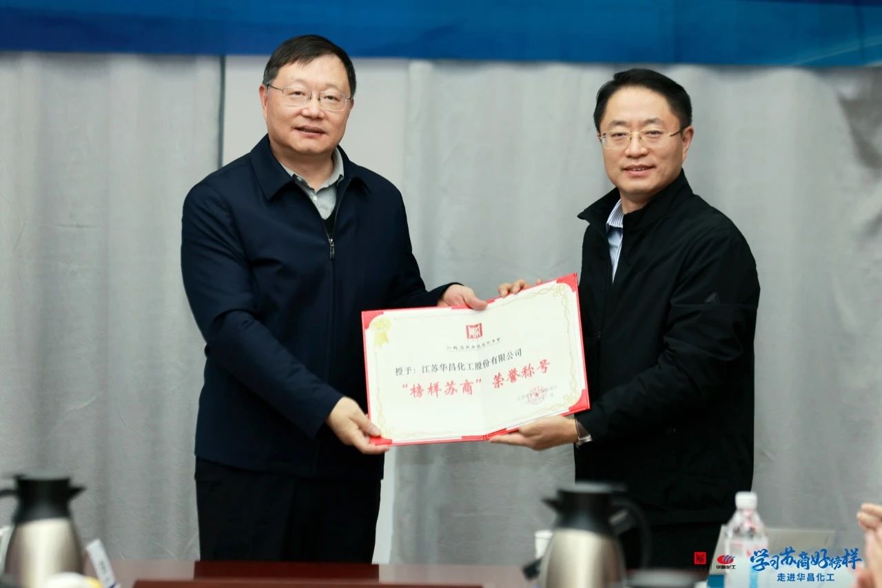 11月29日下午,由江蘇省蘇商發(fā)展促進(jìn)會(huì)主辦、江蘇華昌化工股份有限公司、蘇商會(huì)蘇州中心承辦的“2024學(xué)習(xí)蘇商好榜樣——走進(jìn)華昌化工”活動(dòng)順利舉辦。
