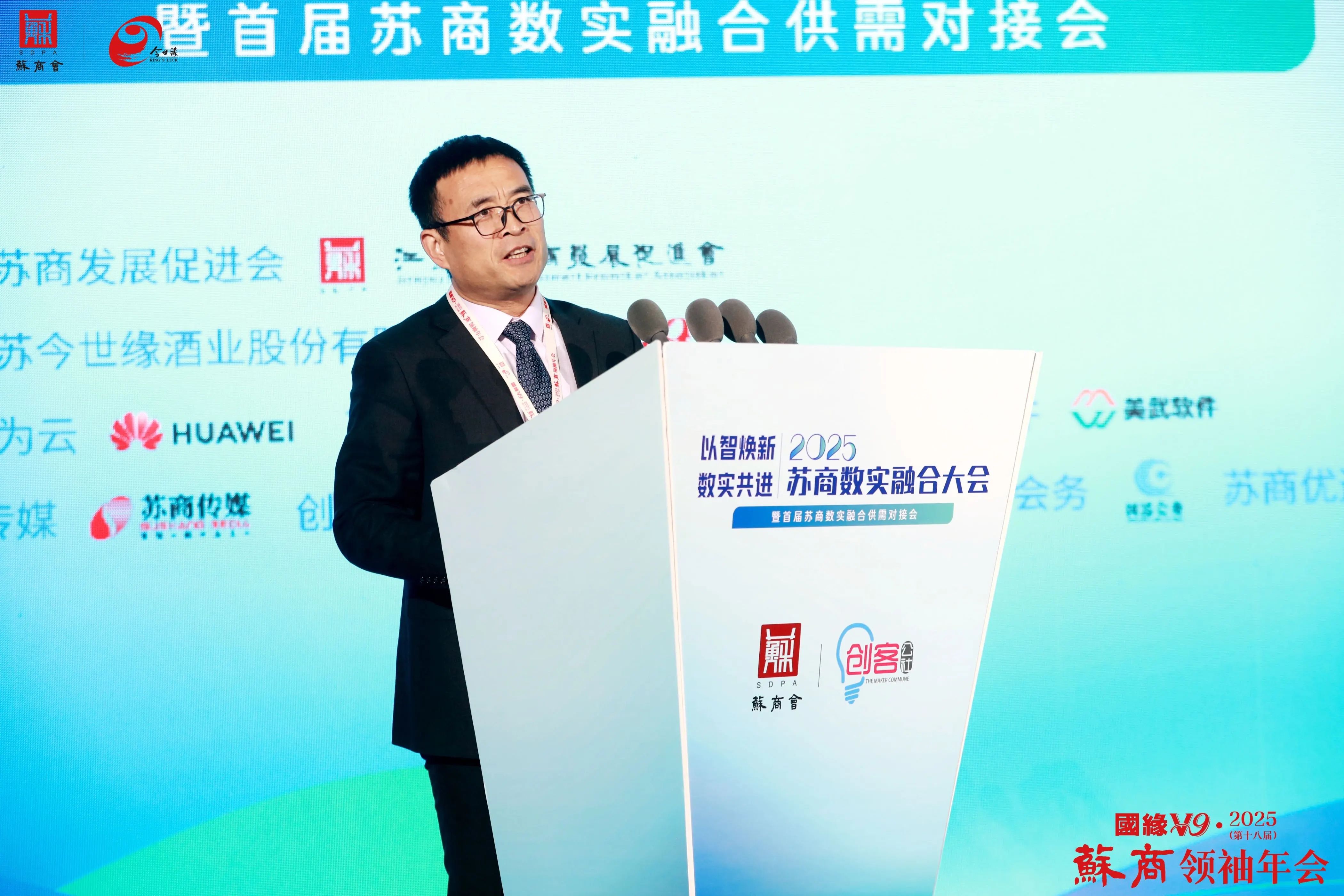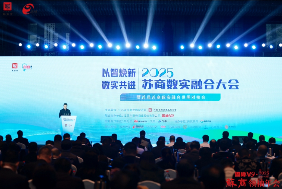 12月20日,由江蘇省蘇商發(fā)展促進(jìn)會(huì)主辦,江蘇今世緣酒業(yè)股份有限公司聯(lián)合主辦,華為云、飛書戰(zhàn)略合作,美武軟件協(xié)辦,蘇商傳媒、創(chuàng)客公社、蘇商學(xué)院、國(guó)器會(huì)務(wù)、蘇商優(yōu)選承辦的2025蘇商數(shù)實(shí)融合大會(huì)暨首屆蘇商數(shù)實(shí)融合供需對(duì)接會(huì)在南京紫金山莊隆重舉行。