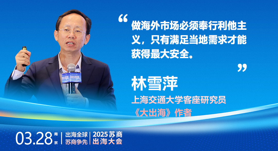 在啟迪分享環(huán)節(jié),上海交通大學客座研究員、《大出海》作者林雪萍壓軸呈現(xiàn)《大出海——中國制造全球出征的關(guān)口和突破》。他從宏觀角度分析了中國制造在全球市場中的地位和機遇,為蘇商企業(yè)的全球化戰(zhàn)略提供了新的思路和方向。