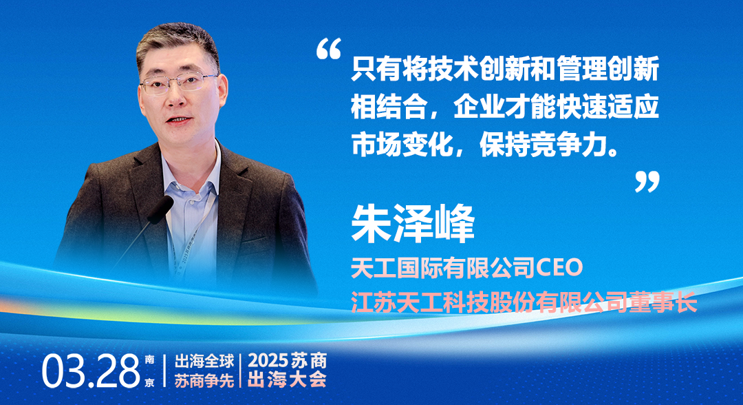 天工國際有限公司CEO、江蘇天工科技股份有限公司董事長朱澤峰以《從出海到入局——全球化企業(yè)的增長新范式》開篇,結(jié)合天工國際40年出海歷程,系統(tǒng)闡述了企業(yè)在全球市場構(gòu)建競爭力的經(jīng)驗與思考。