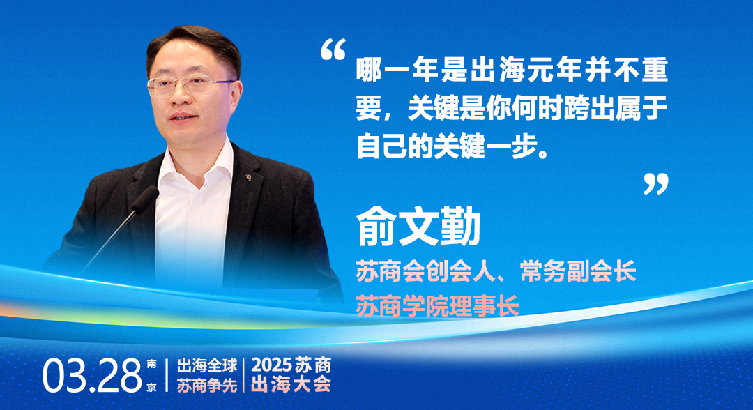 大會期間,蘇商會創(chuàng)會人、常務(wù)副會長,蘇商學院理事長俞文勤作為主辦方代表,隆重發(fā)布了《蘇商出海2025行動計劃》。該計劃旨在整合政府、商會、企業(yè)、專業(yè)機構(gòu)等多方資源,通過組織海外對標游學考察、推動海外優(yōu)質(zhì)資源對接、促進蘇商協(xié)同出海發(fā)展等多元化途徑,為江蘇企業(yè)提供更加全面、堅實的支撐與保障。