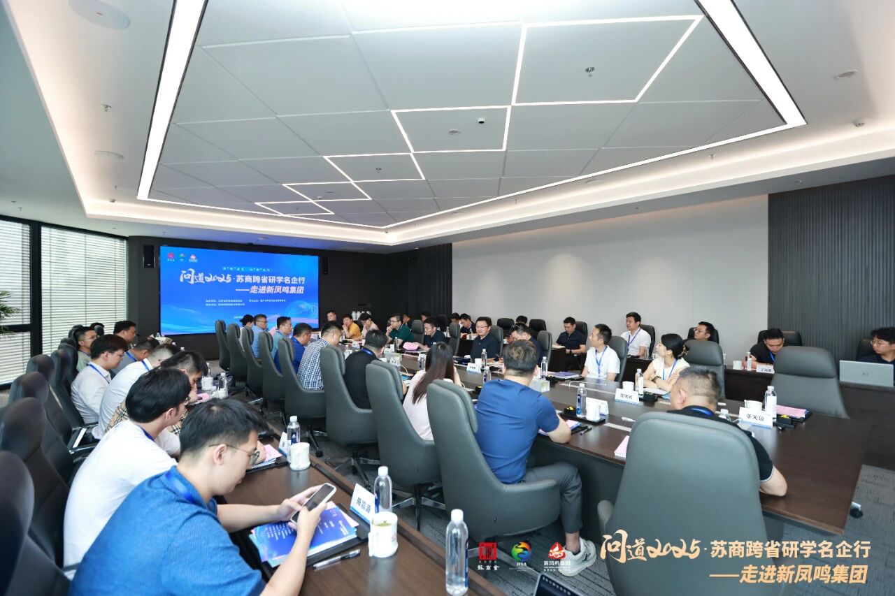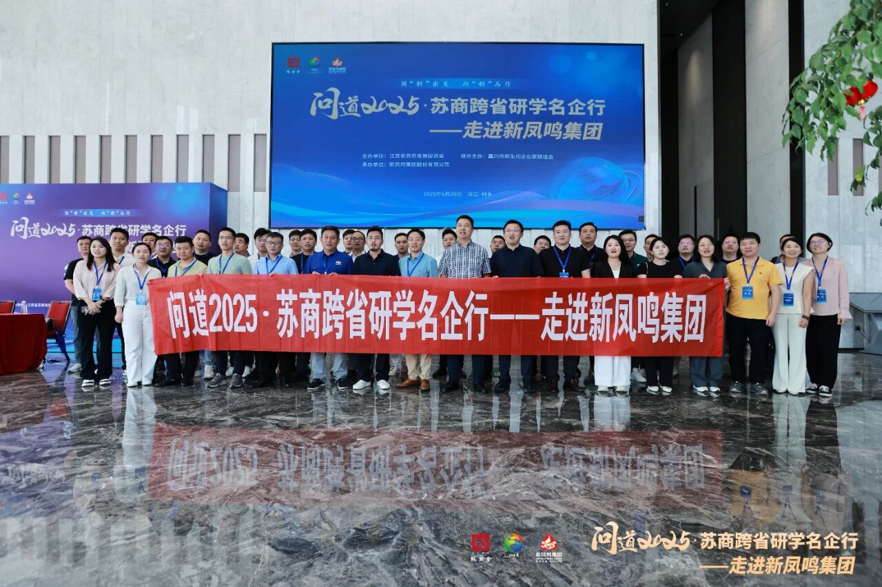 6月26日,由江蘇省蘇商發(fā)展促進會主辦、嘉興市新生代企業(yè)家聯(lián)誼會聯(lián)合主辦、新鳳鳴集團股份有限公司承辦的“問道2025·蘇商跨省研學名企行——走進新鳳鳴集團”活動成功舉辦。來自江浙兩省的40余位新生代企業(yè)家齊聚中國化纖龍頭企業(yè)新鳳鳴集團,圍繞“循‘新’出發(fā) 向‘新’而行”主題,與莊耀中董事長共同探討“一根絲”背后的傳承與創(chuàng)新。