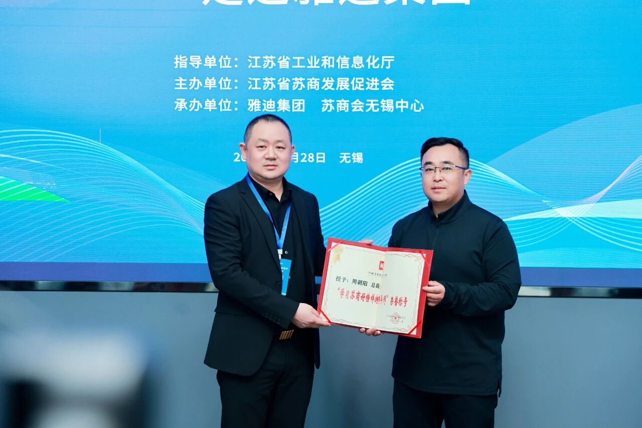 11月28日下午,由江蘇省蘇商發(fā)展促進會主辦、雅迪、蘇商會無錫中心承辦的“2025學(xué)習(xí)蘇商好榜樣——走進雅迪集團”活動順利舉辦。