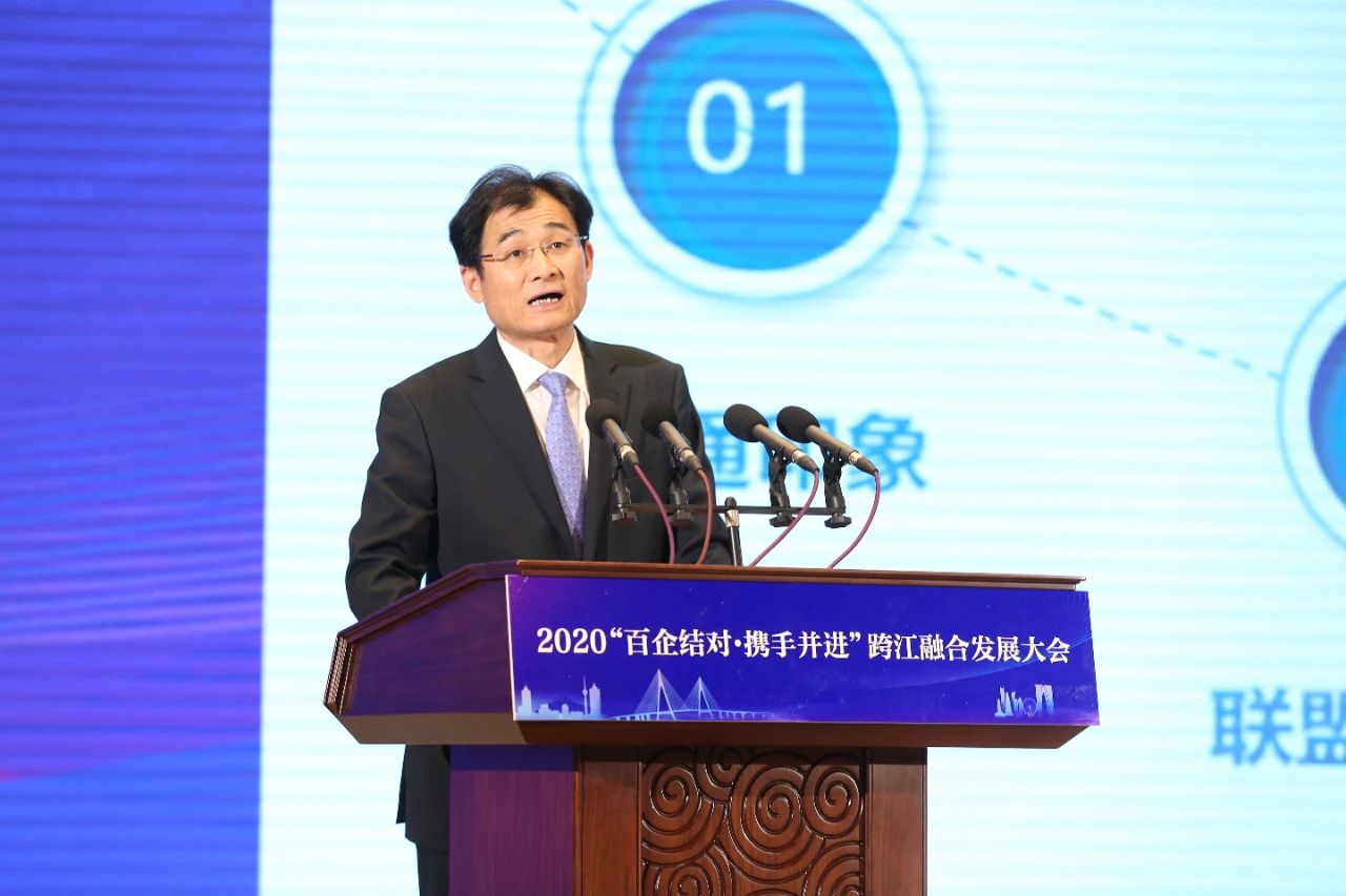 2020年5月23日,王友林在“百企結(jié)對(duì)·攜手并進(jìn)”跨江融合發(fā)展大會(huì)上發(fā)言