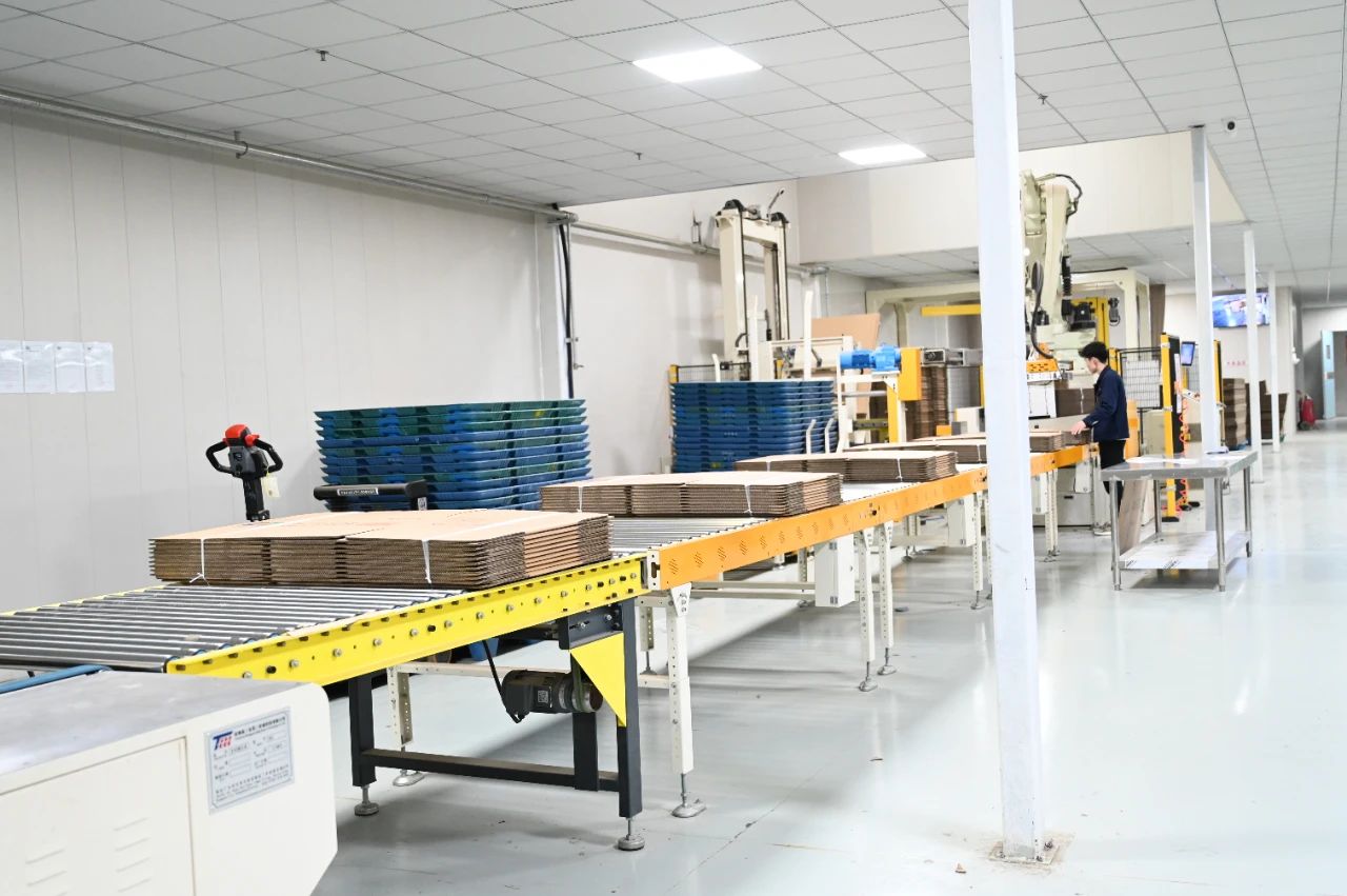 “艾嘉包裝于2024年初引進(jìn)蜂窩板與蜂窩紙箱生產(chǎn)線,并于6月正式投產(chǎn)。蜂窩產(chǎn)品相比傳統(tǒng)瓦楞產(chǎn)品,可節(jié)約20-30%用紙成本,且生產(chǎn)效率高、抗壓強(qiáng)度好,可以帶動(dòng)光伏、家電、食品等行業(yè)企業(yè)逐步轉(zhuǎn)向蜂窩包裝。盡管蜂窩包裝存在工藝把控的技術(shù)壁壘,但我和馬總都有信心,艾嘉包裝可以憑借對(duì)技術(shù)和品質(zhì)的嚴(yán)格要求,使蜂窩生產(chǎn)線在全國(guó)范圍內(nèi)處于行業(yè)領(lǐng)先水平。”余英俊說(shuō)。