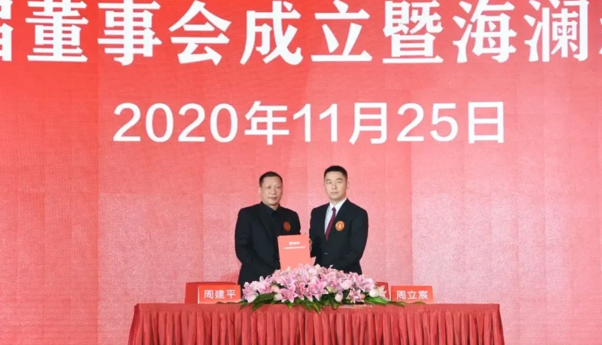 2017年2月8日,海瀾集團在其主辦的飛馬獎頒獎典禮上正式宣布:年僅29歲的副總裁周立宸出任海瀾集團總裁。彼時海瀾集團創(chuàng)始人周建平親筆為兒子寫下四字贈語“建功立業(yè)”,蘊含了“功在建平,業(yè)在立宸”的深深期許。
