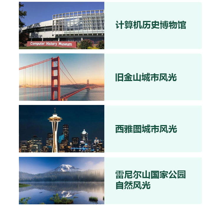 同時(shí),我們也精心安排了舊金山與西雅圖的人文盛宴——探訪計(jì)算機(jī)歷史博物館,目睹金門大橋的宏偉,體驗(yàn)漁人碼頭的熱鬧,感受太空針?biāo)默F(xiàn)代氣息和派克市場的活力四射……沉浸式體驗(yàn)科技與自然、現(xiàn)代與歷史的完美融合。